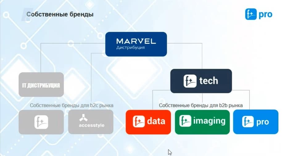 Подразделение «Ф-ПЛЮС МОБАЙЛ» - это дочерняя компания «Марвел-дистрибуции» (все направления деятельности дистрибьюторской компании МАРВЕЛ изображены на следующем слайде).