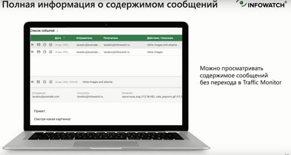 Это может помочь в проведении расследования. В InfoWatch Vision стало удобнее работать со списком событий, теперь можно просматривать содержимое сообщений без перехода из Vision в Traffic Monitor.