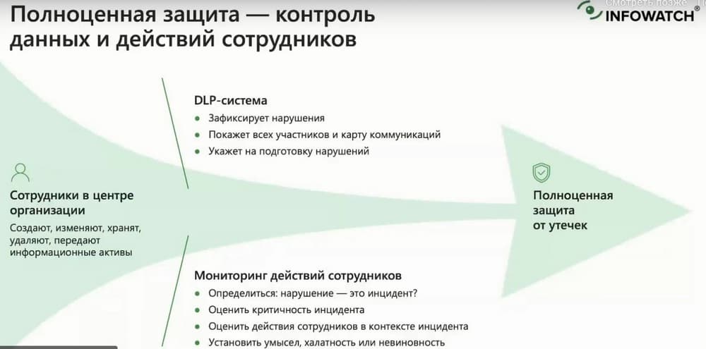 Сегодняшнее мероприятие ведет Рустам Фаррахов, директор департамента развития продуктов, InfoWatch. Сегодня речь пойдет об обновлениях в DLP и какие новые возможности появились в продуктах компании InfoWatch.
