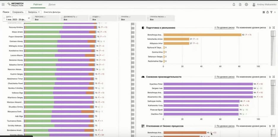 Можно по сотрудникам выявить некие отклонения, признаки того, что что-то идет не так. Это позволяет вовремя обратить внимание на складывающуюся ситуацию.