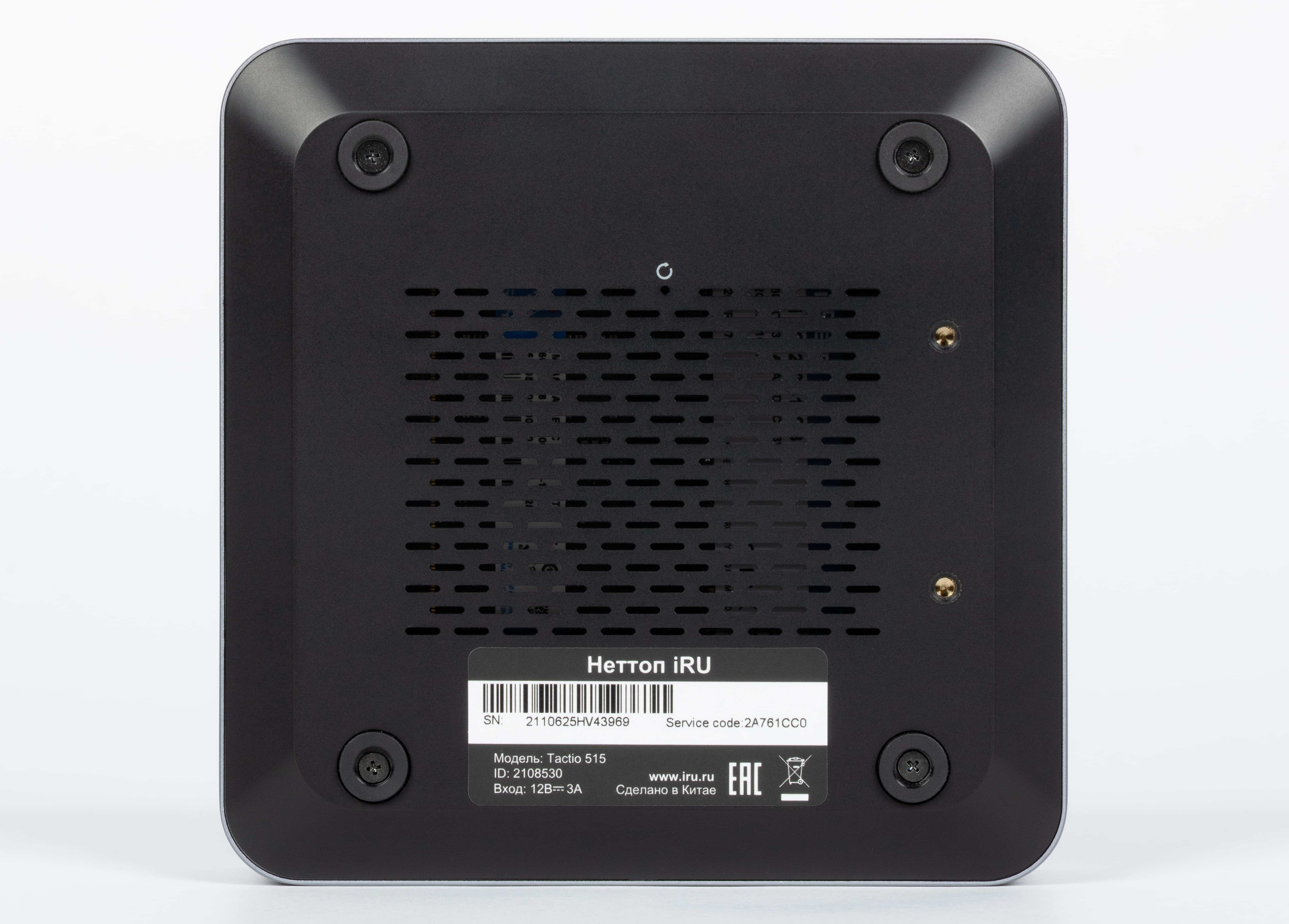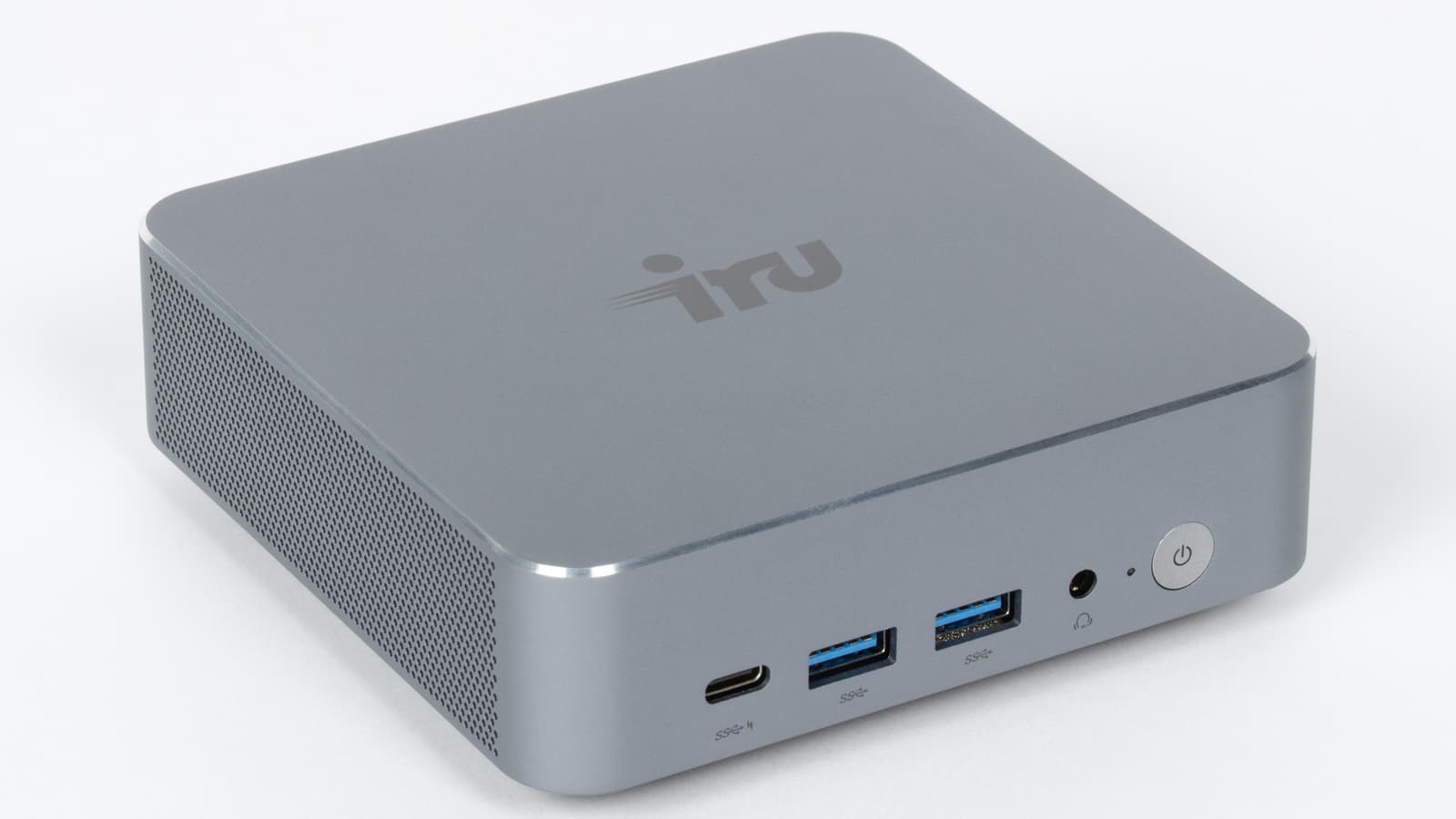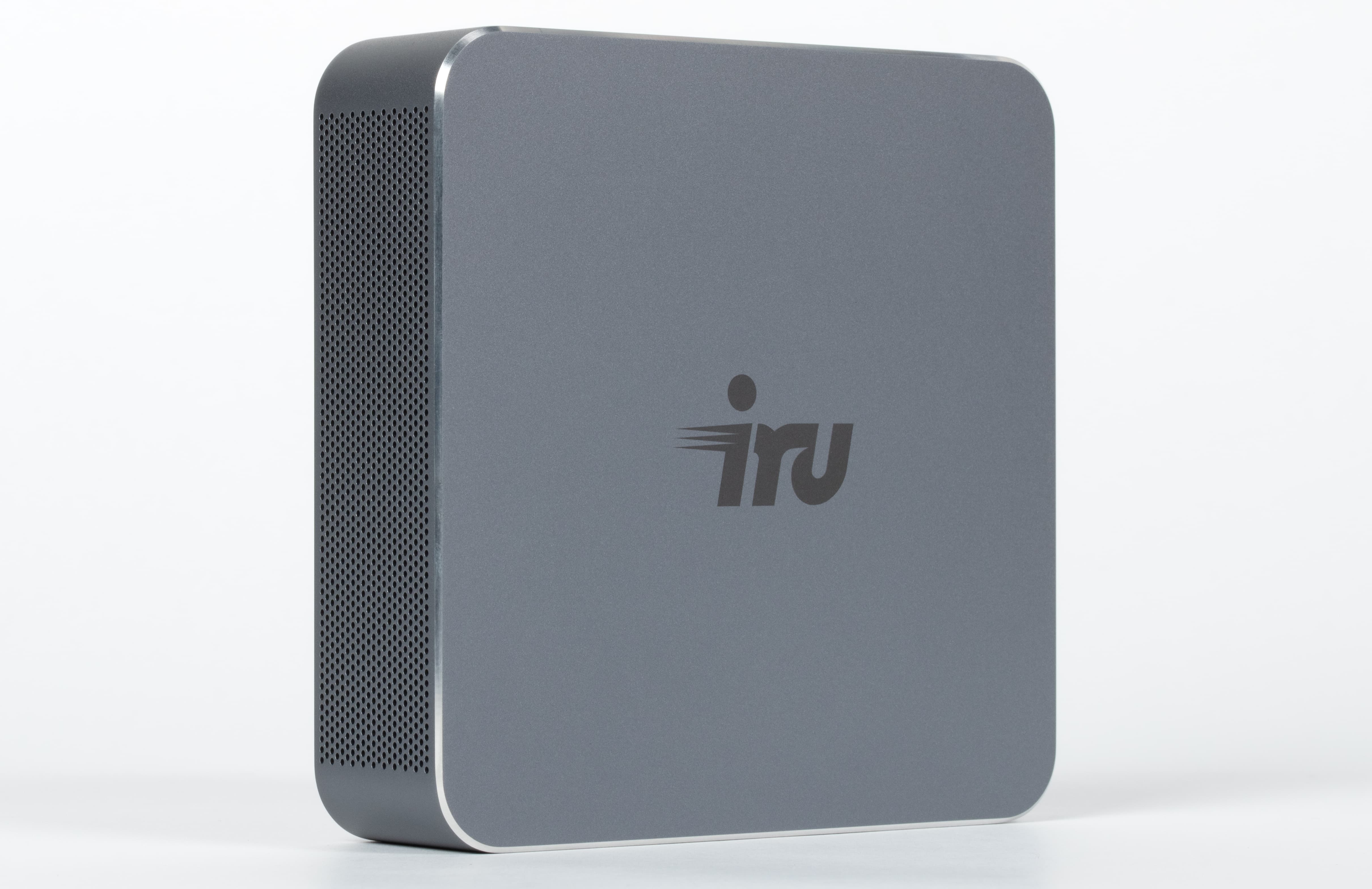 iRU Tactio 515 выполнен в крайне компактном металлическом корпусе размерами 120×37×120 мм. Дизайн сдержанный и аккуратный: матовая серая поверхность, скругленные углы и отсутствие лишних декоративных элементов подчеркивают утилитарный характер устройства. Металлический корпус не только симпатично выглядит и обеспечивает необходимую жесткость конструкции, но и потенциально может способствовать более эффективному рассеиванию тепла.