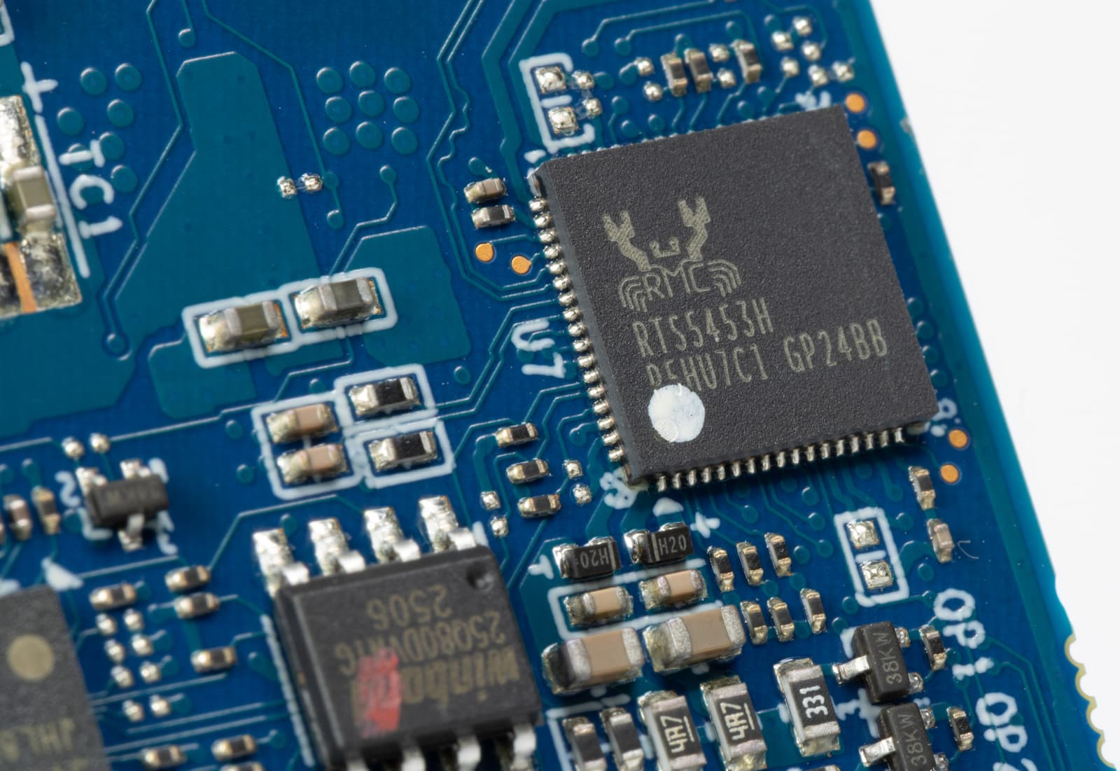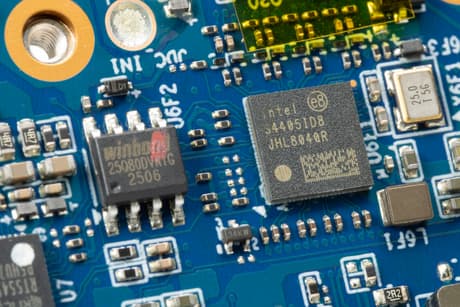 Realtek RTS5453H — это контроллер USB Type-C с поддержкой USB Power Delivery, который управляет работой разъемов USB-C, согласованием питания и режимами Alternate Mode. Intel JHL8040R относится к семейству контроллеров Thunderbolt и используется как ретаймер/контроллер высокоскоростного интерфейса, обеспечивая стабильную работу Thunderbolt / USB4-соединений при высоких скоростях передачи данных. Микросхема Winbond 25Q80 представляет собой SPI-флеш-память, в которой хранится прошивка UEFI/BIOS системы. Дополняют эту группу микросхемы от ITE и Realtek, выполняющие служебные задачи — мониторинг, управление отдельными интерфейсами и вспомогательную логику.