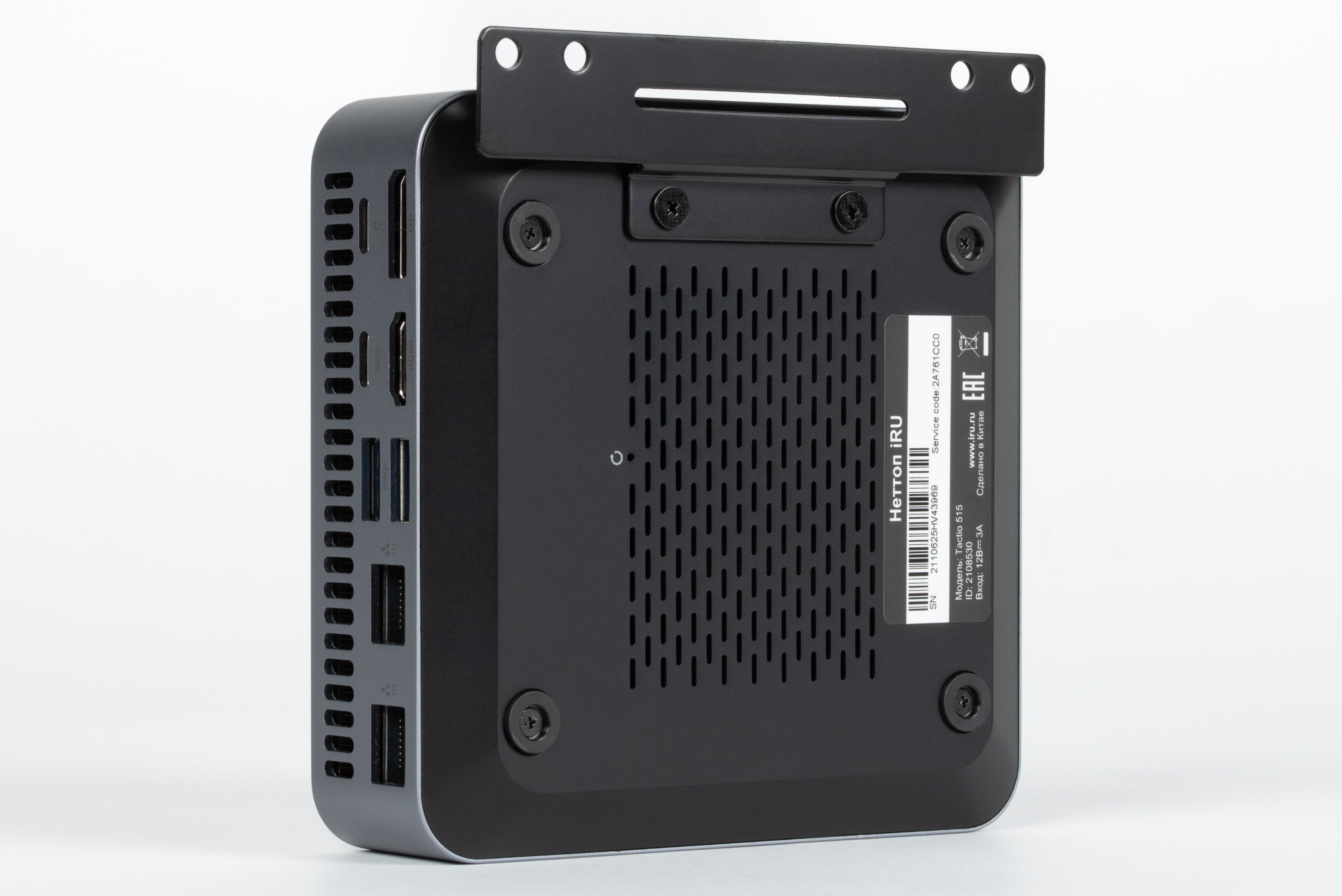 Набор интерфейсов iRU Tactio 515 рассчитан на подключение офисной периферии и нескольких дисплеев, при этом выбор USB-портов заметно шире среднего для мини-ПК. Компактные размеры корпуса позволяют размещать устройство на столе, за монитором или на стене, что удобно при ограниченном рабочем пространстве. В целом конфигурация iRU Tactio 515 соответствует задачам офисного сегмента, где основной акцент сделан на компактности, удобстве размещения и достаточном уровне вычислительной производительности для повседневной работы.