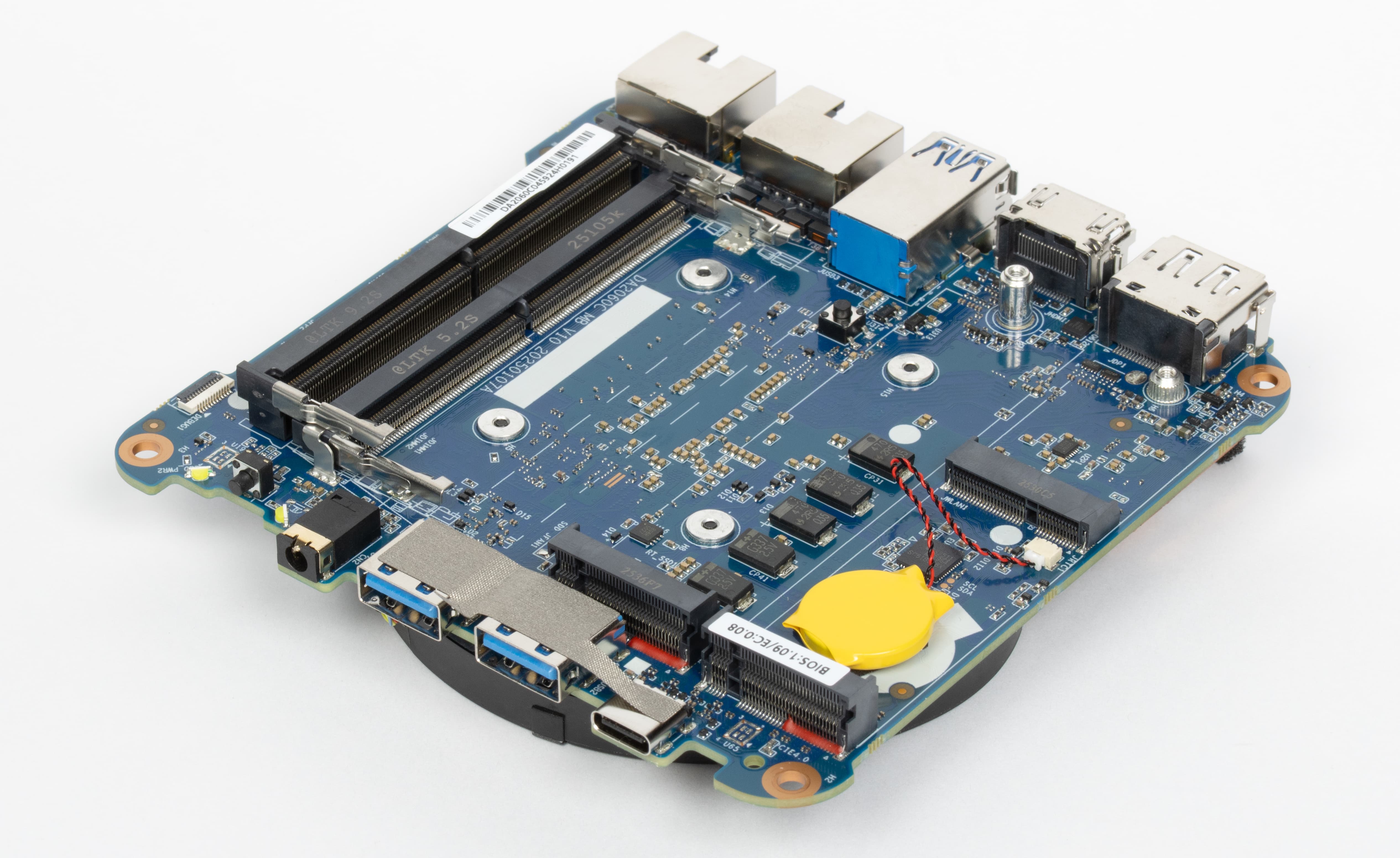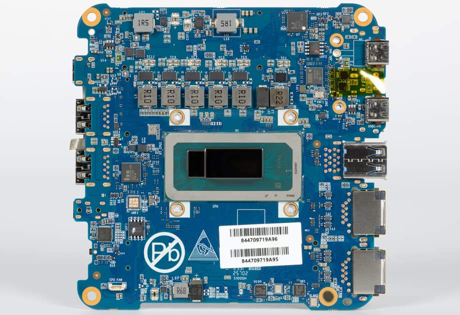 На плате установлен процессор Intel Core i5-12450H, распаянный напрямую в BGA-исполнении — для мини-ПК это вполне стандартное решение. Это мобильный чип семейства Alder Lake с гибридной архитектурой, изначально рассчитанный на использование в компактных системах с ограниченными возможностями охлаждения и энергопотребления.