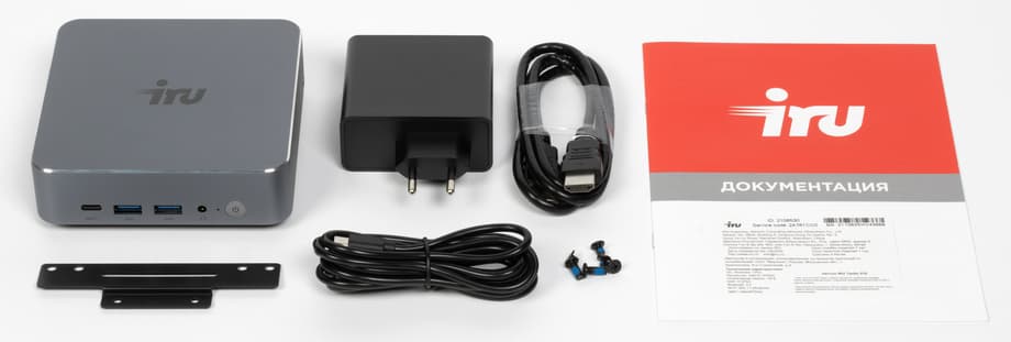 В комплект поставки входят сам мини-ПК, внешний блок питания мощностью 100 Вт с кабелем, HDMI-кабель, крепление VESA и сопроводительная документация. Набор стандартный для устройств этого класса и позволяет сразу приступить к эксплуатации, включая вариант размещения за монитором или на стене.