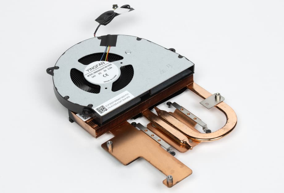 Вентилятор ориентирован в сторону прорезей на нижней панели корпуса, тогда как тепловые трубки и радиатор направлены к задней стенке с выходными отверстиями.