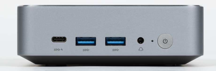 Блок питания мощностью 100 Вт имеет габариты 84×72×33 мм и выполнен в формате с прямым подключением к розетке. Подача питания на мини-ПК осуществляется по кабелю USB Type-C, разъем для которого расположен на передней панели корпуса.