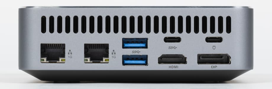 На задней панели расположены четыре порта USB 3.2 Gen1 Type-A, два сетевых разъема RJ-45 для проводного подключения с поддержкой Gigabit Ethernet, а также видеовыходы DisplayPort и HDMI. Здесь же находится разъем USB Type-C, используемый для подключения адаптера питания.