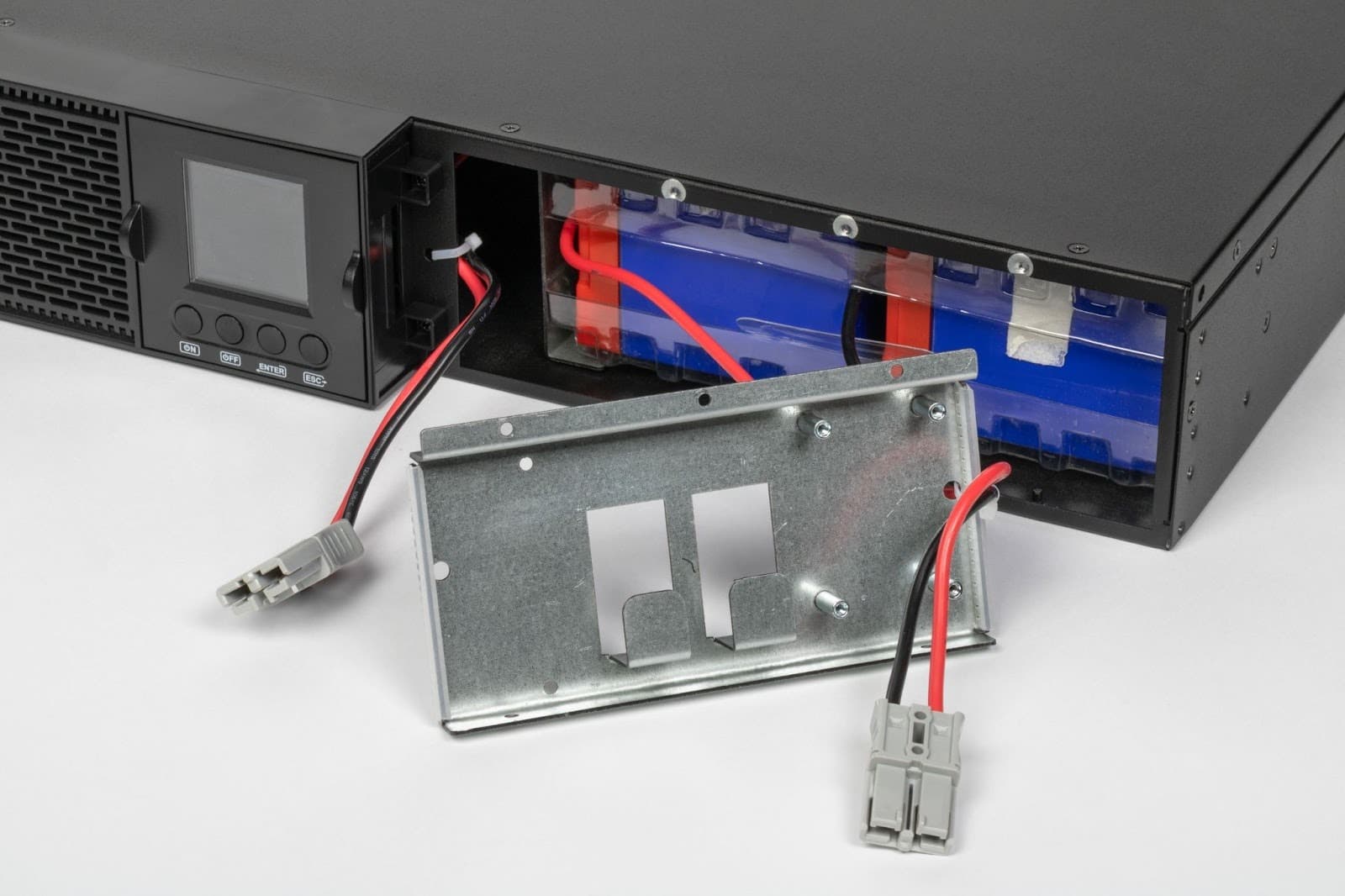 Металлические направляющие внутри отсека обеспечивают жесткую фиксацию батарей и исключают их смещение при установке и обслуживании.