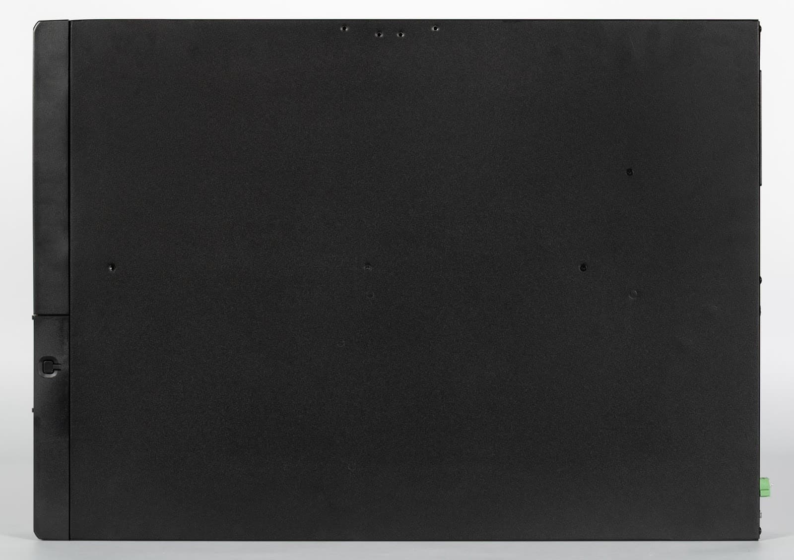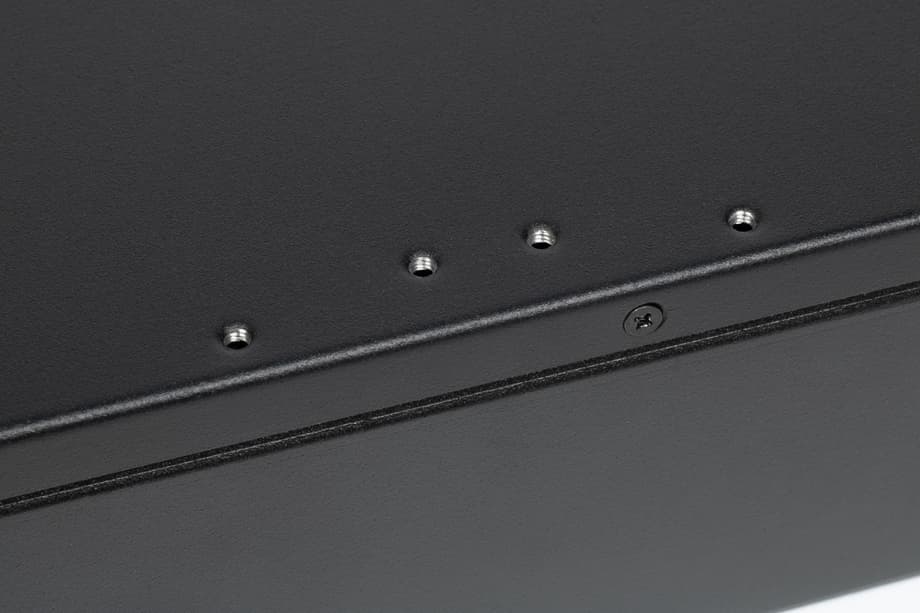 На боковых стенках корпуса предусмотрены отверстия для крепления комплектных планок при установке в стойку. Все неиспользуемые отверстия производитель предлагает закрывать пылезащитными колпачками, которые входят в комплект крепежных элементов.