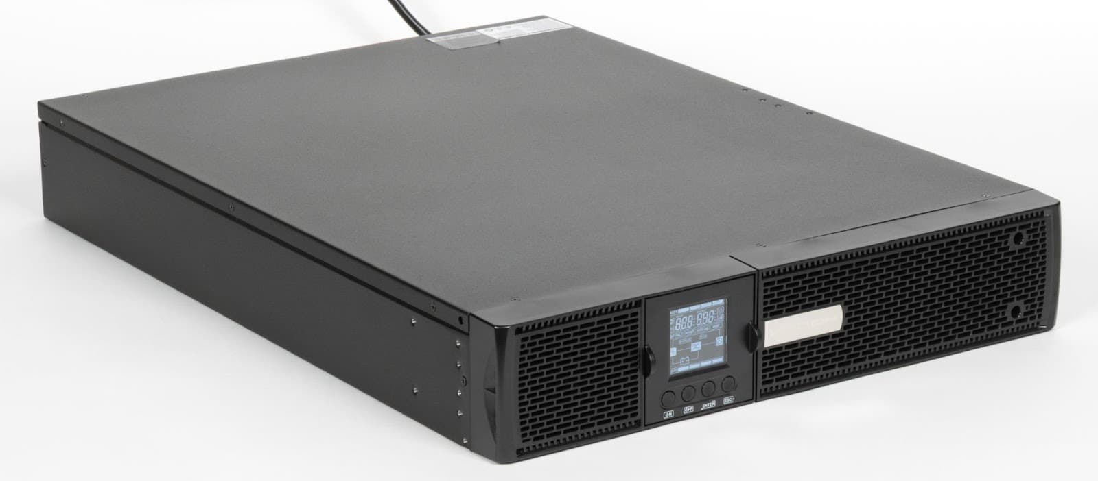 Серия поддерживает функции управления, мониторинга состояния и настройки параметров — стандартный набор для ИБП данного класса, востребованный при эксплуатации в распределенных ИТ-комплексах. Устройства работают в широком диапазоне входных напряжений и обеспечивают около двух минут автономной работы при 100% нагрузке. Предусмотрена возможность подключения внешних батарейных модулей, что позволяет увеличивать время автономной работы. Посмотрим, как старшая модель линейки проявит себя на практике.