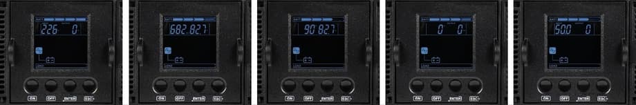 Экран на передней панели ИБП «Иппон Ампер 3000» в постоянном режиме отображает ключевую информацию, необходимую для повседневной эксплуатации устройства. На дисплее выводится текущий режим работы, уровень нагрузки и состояние аккумуляторов, что позволяет быстро оценить состояние системы.