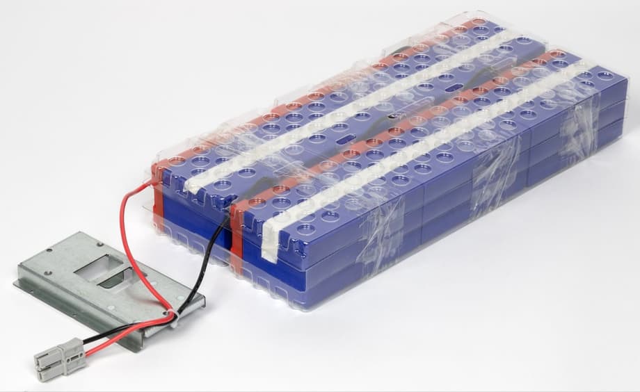 Аккумуляторный модуль представляет собой сборку отдельных ячеек, объединенных в единый пакет. Они размещены в пластиковых кассетах, обеспечивающих базовую механическую фиксацию. Дополнительно вся сборка стянута обычным скотчем — решение простое и визуально не самое аккуратное, но с практической точки зрения вполне рабочее.
