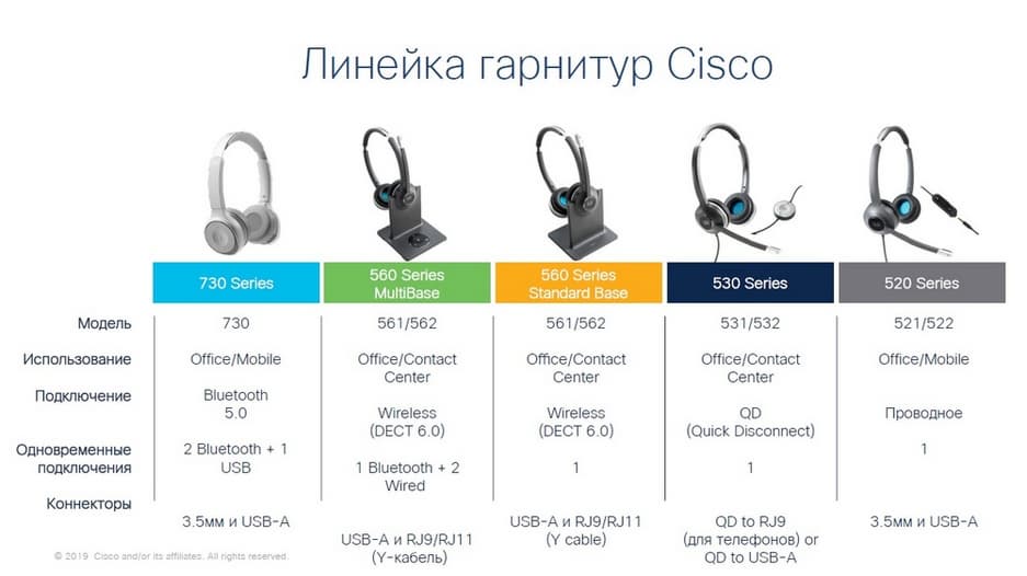 - Новая гарнитура Bluetooth. Cisco Headset 700 отфильтрует офисный шум и поможет сосредоточиться на важном. Подключив гарнитуру к собственному устройству или любому устройству Cisco, можно перемещаться по офису и легко переходить от фонового слушания музыки к входящему звонку или очередной конференции. Удобство Headset 700 оценят и работники умственного труда, и сотрудники контакт-центров. Для ее настройки используется мобильное приложение. ИТ-администраторы смогут управлять гарнитурами через Control Hub, будучи уверенными в защите от угроз и заражения вредоносным ПО. Более того, гарнитуры Cisco Headset 700 интегрированы с нашим приложением и устройствами для совместной работы. Они обладают уникальными интеллектуальными возможностями. Сегодня они умеют выявлять и подавлять фоновый шум. Вполне возможно, что завтра они смогут напомнить о начинающейся через несколько минут телеконференции.
