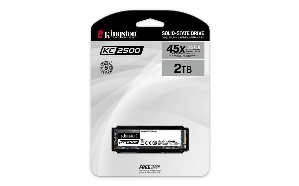 Kingston Digital, Inc., подразделение по производству флеш-памяти компании Kingston Technology, Inc., представила KC2500: твердотельный накопитель M.2 NVMe PCIe нового поколения для настольных ПК, рабочих станций и HPC. KC2500 обеспечивает высокую производительность благодаря новому контроллеру Gen 3.0 x 4 и 96-слойному 3D TLC NAND. Новый SSD имеет скоростью чтения до 3500 МБ/с и скоростью записи до 2900 МБ/с.