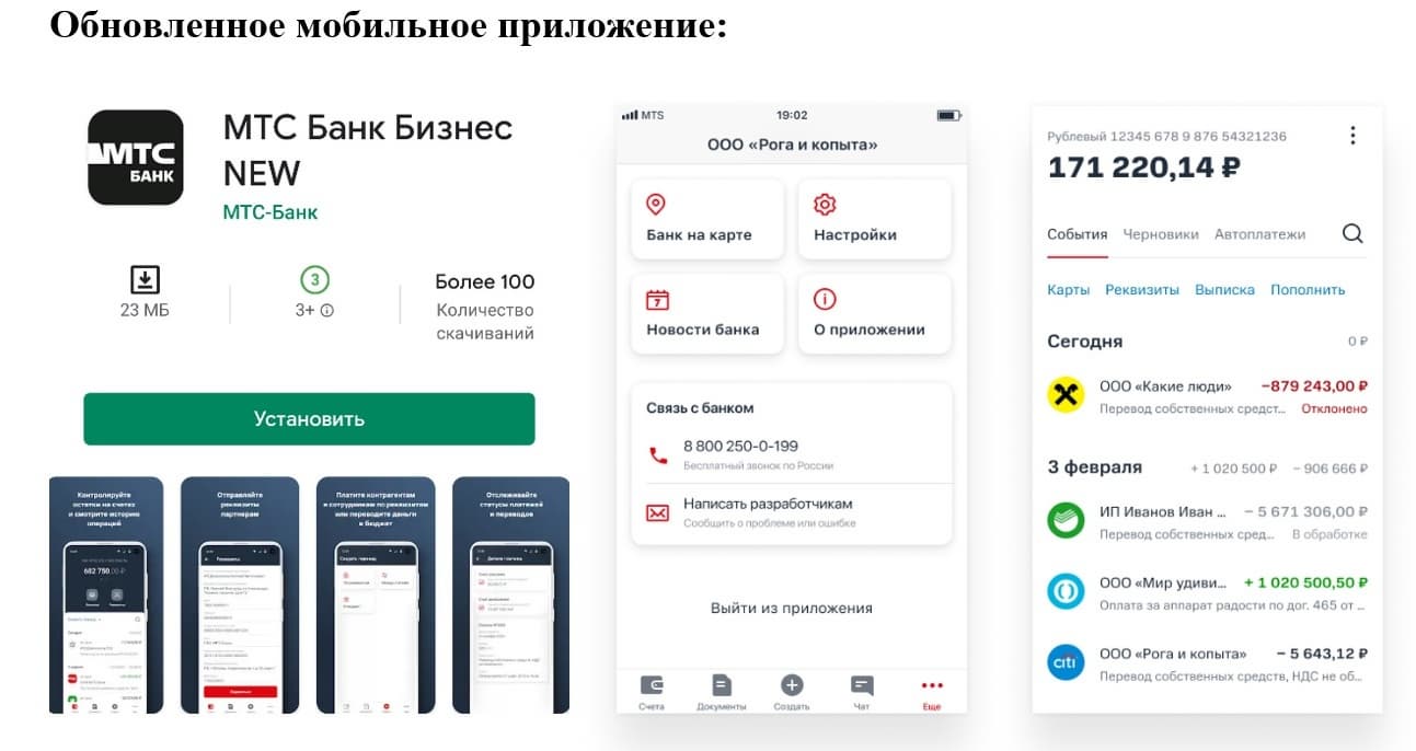 Обновленное мобильное приложение «МТС Банк Бизнес NEW» доступно для скачивания в магазинах приложений Google Play и App Store. Войти в Интернет-банк можно по ссылке (https://idm.b.mtsbank.ru/login/msb/auth/)