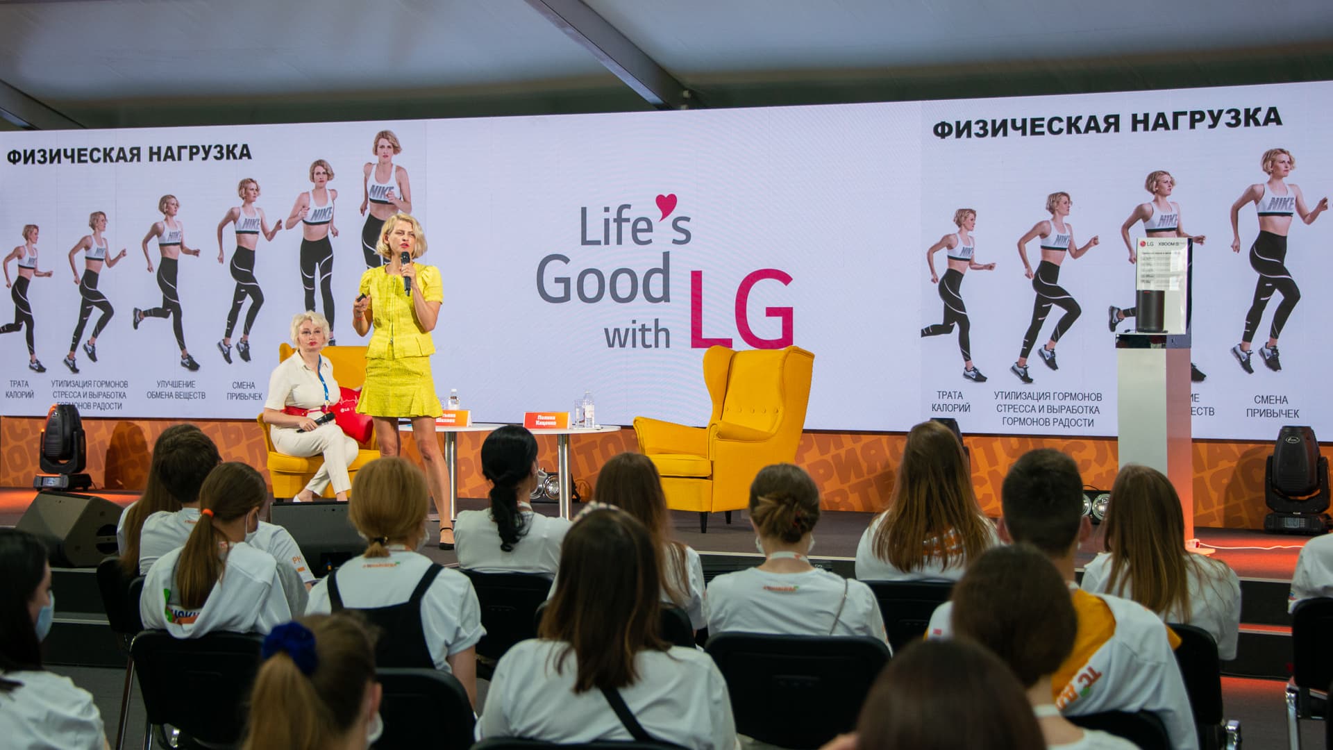 Официальное открытие второй смены форума состоялось 26 июля. Директор по связям с общественностью и социальным проектам компании LG, член Координационного Центра по донорству при Общественной палате РФ Татьяна Шахнес выступила с приветственным словом для участников форума. На сцене к ней присоединились послы добрых дел и давние друзья LG: режиссер и представитель Общественной палаты Московской области Егор Кончаловский, известный российский дизайнер одежды, заслуженный художник РФ Игорь Чапурин и со-основатель благотворительного марафона «Бегущие сердца», основатель спортивной студии #SlimFitClub, владелица коммуникационного и event-агентства PK Connection Полина Киценко.
