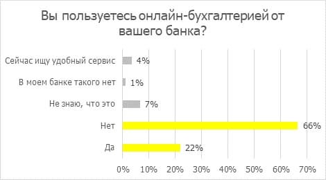 При этом каждый пятый предприниматель пользуется онлайн-бухгалтерией своего банка, а 78% все еще не пользуются по разным причинам.