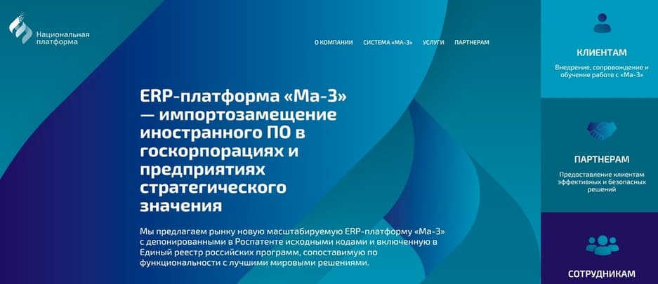 Компания «Национальная платформа», входящая в IT-холдинг «Национальная компьютерная корпорация», объявляет об успешном завершении основного этапа разработки новой отечественной бизнес-платформы «Ма-3» класса ERP для автоматизированного управления предприятием. За четыре года в создании системы приняли участие более сотни высококвалифицированных специалистов в области разработки и внедрения бизнес-приложений.