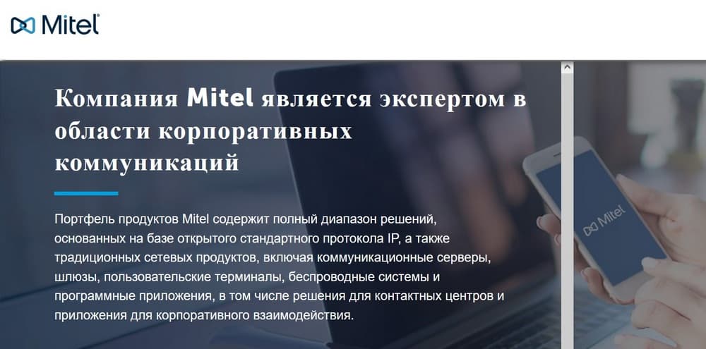 Компания Mitel является одним из ведущих поставщиков в сфере бизнес-коммуникаций — ее продукцией ежедневно пользуются более 70 млн человек в 100 странах мира. Портфель вендора включает полный спектр локальных, гибридных и облачных решений, позволяющих клиентам выбрать свой собственный путь цифровой трансформации с учетом индивидуальных потребностей и достигать бизнес-целей.