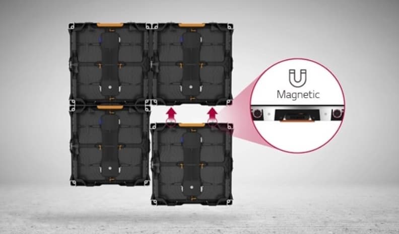 Так, LED кабинеты соединяются с помощью специальных магнитов.