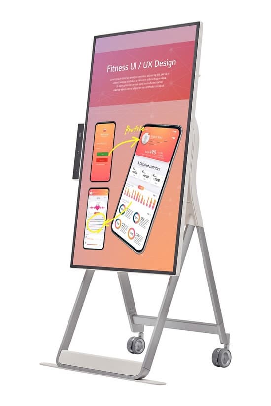 Дисплей LG One:Quick Flex оснащен сенсорной технологией In-Cell, а специальный стилус для сенсорного экрана (поставляется в комплекте с дисплеем) позволяет легко делать заметки и рисовать. Также, все результаты работы могут быть сохранены в памяти устройства и переданы по электронной почте, USB флешке и через QR код для мобильных устройств. LG One: Quick Flex может быть дополнен мобильной подставкой с колёсами, которая обеспечивает его лёгкое перемещение и возможность поворота и использования в портретном режиме. Кроме того, высоту стойки можно регулировать в зависимости от положения или роста пользователя. Интерфейс LG One: QuickFlex адаптирован для сенсорного управления и спроектирован так, чтобы быть похожим на интерфейс мобильных устройств, что упрощает его использование. Корпус LG One:Quick Flex выполнен в стильном бежевом цвете с гладкой поверхностью и легко сочетается с окружающим интерьером.