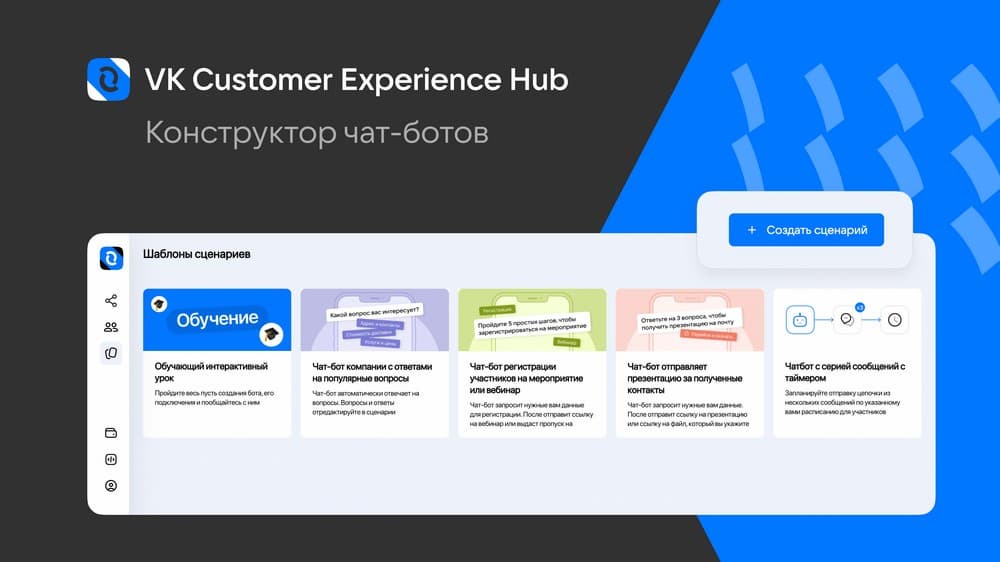 «Мы запустили платформу VK Customer Experience Hub год назад. С ее помощью компании управляют своими данными и персонализируют общение с клиентами в разных каналах. Решение работает на базе собственных технологий VK, которые активно применяются и в других продуктах компании для бизнеса. Сегодня платформа обрабатывает свыше 2 млн событий в минуту и отправляет более 350 млн персонализированных коммуникаций в месяц. При разработке сервиса мы изучали лучшие практики и старались сделать его настолько простым, чтобы любой пользователь мог создать свой чат-бот за 15 минут», — комментирует Максим Зенин, заместитель коммерческого директора по рекламным продуктам и инновациям VK.