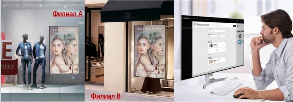 Ключевым требованием к дисплеям для сетевых гипермаркетов является возможность отображать настраиваемый контент в зависимости от местоположения и часового пояса. Информацией для посетителей, такой как меню и цены, можно управлять во внешних базах данных, и с помощью LG SuperSign CMS применять к контенту изменения в режиме реального времени.
