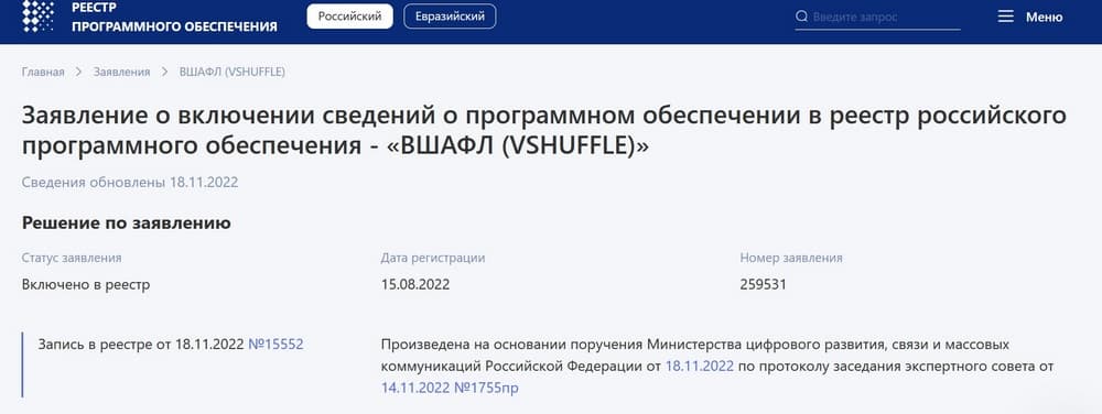 Команда департамента информационной безопасности и программного обеспечения дистрибьютора совместно с партнерским каналом займется распространением, внедрением и кастомизацией решения VShuffle под существующие потребности заказчиков. Вхождение решения VShuffle в реестр российского ПО* позволит партнерам активнее его использовать в проектах, предполагающих использование российских разработок.