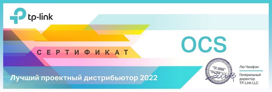 OCS Distribution благодарит компанию TP-Link за высокую оценку, а также своих партнеров за доверие при выборе поставщика продукции и интерес к решениям вендора.