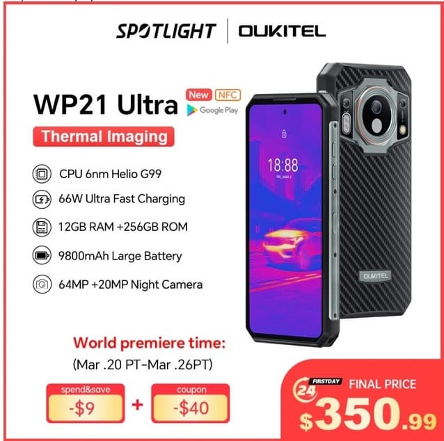 Смартфон Oukitel WP21 Ultra доступен на AliExpress по сниженной цене 350,99 долларов США во время торгового фестиваля AliExpress 328, что является выгодной сделкой, учитывая все функции, которые он может предложить. Не упустите шанс приобрести защищенный смартфон, который будет соответствовать вашему авантюрному образу жизни. Помните, период скидок с 20 марта по 26 марта 2023 года, действуйте сейчас!