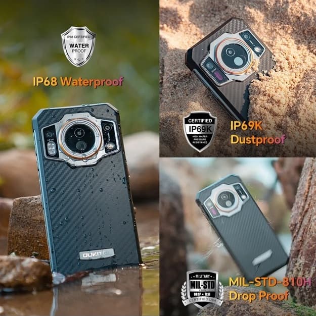 OUKITEL WP21 Ultra размещен в корпусе, соответствующем стандартам защиты IP68, IP69K и MIL-STD-810H. Сделайте его подходящим для различных климатических условий и условий. Телефон не получит награды за ультратонкость, так как его размеры 177,3 х 84,3 х 18,4 мм и вес 398 граммов, но он достаточно прочный, чтобы компенсировать свой размер. Новинка также оснащена NFC, 6,78-дюймовым дисплеем FHD+ 120 Гц и боковым сканером отпечатков пальцев.