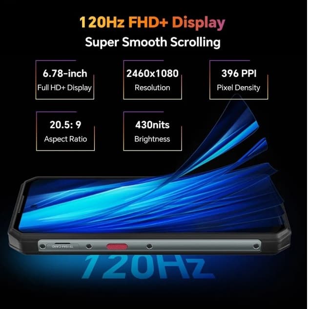 Oukitel WP21 Ultra имеет 6,78-дюймовое разрешение FHD+ с частотой обновления 120 Гц, а на задней панели находится второй экран AOD, который может отображать ваши уведомления и элементы управления музыкой и даже служить видоискателем камеры. Oukitel также предлагает несколько различных циферблатов для дополнительного экрана.