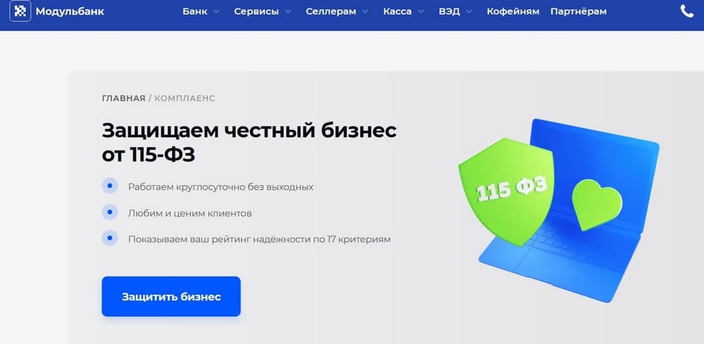 Сервис «Белый бизнес» (https://modulbank.ru/compliance/ ) позволяет предпринимателю посмотреть на свой бизнес глазами банковской службы финансового мониторинга и понять, какие параметры стоит оптимизировать, чтобы не попасть в поле внимания налоговой службы, Центрального банка или других контролирующих организаций, а значит избежать блокировок счета и дополнительных проверок бизнеса. По тем же параметрам можно проверить и своих контрагентов. Первая версия сервиса была запущена в 2015 году, сейчас им пользуются уже десятки тысяч предпринимателей. Алгоритм постоянно дорабатывается, чтобы соответствовать актуальным требованиям регуляторов. В 2022 году он включил в себя свежий пакет обновлений от Центробанка, в том числе требования системы «Светофор». Ядро «Белого бизнеса» — алгоритм FBR, разработка компании AML Technology. Всего FBR включает 12 модулей. «Белый бизнес» использует три из них: мониторинг и проверка операций, KYC и биллинг. Первый модуль проверяет каждую операцию и оцифровывает транзакционный профиль с учетом каждой операции. С его помощью банк может получать и оценивать информацию о налоговой нагрузке, наличии или отсутствии хозяйственных платежей и их доле в общих расходах, отношение сумм переводов на счета физлиц и снятия наличных к обороту и еще более 200 различных показателей. Модуль KYC (know your clients) позволяет собирать дополнительные данные о клиенте из 50+ источников и проверять их по преднастроенной стратегии принятия решения. Модуль биллинга позволяет настраивать индивидуальные лимиты и тарифы. «Мы объединили алгоритм мониторинга и проверки с элементами биллинга и KYC и получили технологию, которая может автоматически оценивать профиль клиента, классифицировать его согласно подходу Центробанка и информировать его о рисках в зависимости от профиля транзакций», – говорит Алевтина Ефимова, член правления Модульбанка, лидер группы группы управления рисками.