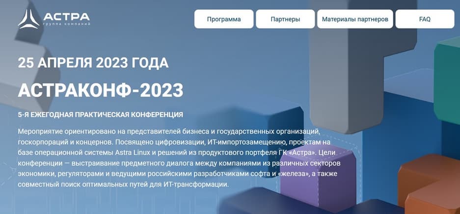 Мероприятие будет посвящено цифровизации, ИТ-импортозамещению, проектам на базе операционной системы Astra Linux и решений из продуктового портфеля ГК «Астра». Программа традиционно включает выступления ключевых спикеров российских ИТ-корпораций, аналитические обзоры экспертов, посвященные развитию наиболее значимых сегментов ИТ-рынка, а также мастер-классы в демолабораториях, организованные техническими специалистами компаний-разработчиков.