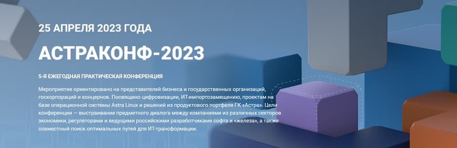 25 апреля в Москве прошла 5-я ежегодная практическая конференция АСТРАКОНФ-2023. Это мероприятие было ориентировано на представителей бизнеса и государственных организаций, госкорпораций и концернов. Посвящено оно было цифровизации, ИТ-импортозамещению, проектам на базе операционной системы Astra Linux и решений из продуктового портфеля ГК «Астра».