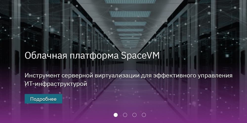 - Облачная платформа Space VM — инструмент серверной виртуализации для эффективного управления ИТ-инфраструктурой, который позволяет снизить расходы на ЦОД, повысить время бесперебойной работы систем и приложений, а также значительно упростить работу ИТ-отдела в ЦОД.