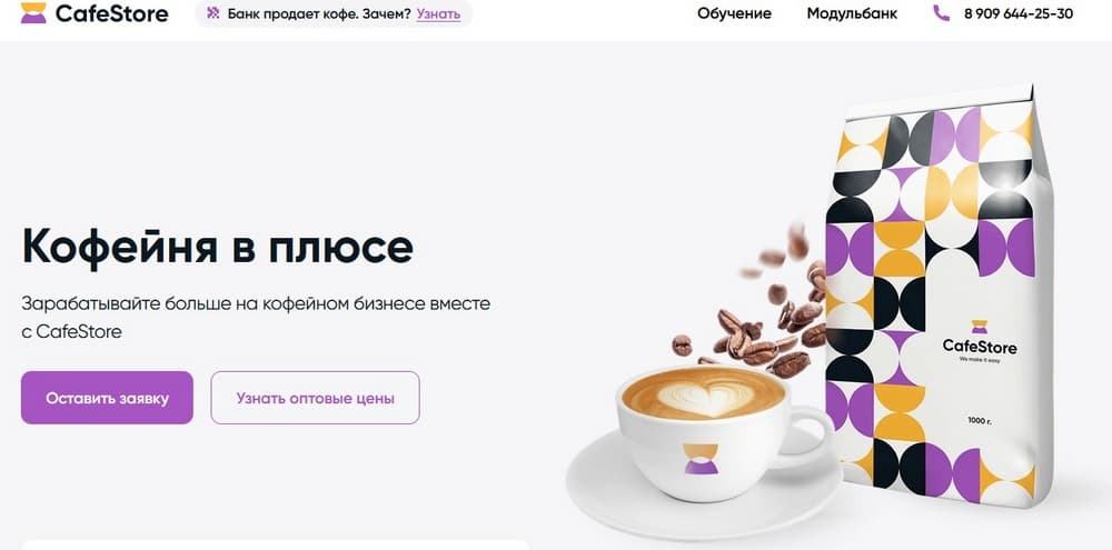 Платформа CafeStore работает по принципу “одного окна” и избавляет предпринимателя от необходимости общаться с разными поставщиками и подрядчиками. Платформа включает в себя маркетплейс для закупок расходников для кофейни со скидками до 40% от рыночных цен, что дает возможность экономить на зерне и сопутствующих товарах. Также CafeStore предлагает выгодное банковское обслуживание от Модульбанка, включая специальные условия по лизингу оборудования.