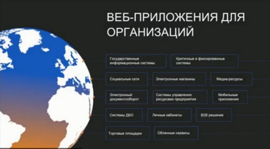 Защита внутрикорпоративных сайтов. Даже если это приложение используется внутри организации, часто это приложения, которые доступны через web-интерфейс или через мобильные приложения. Т.е. это технологии те же самые. Защищать корпоративные приложения тоже нужно, но здесь специфика может быть связана с защитой от утечки корпоративных данных, от активности инсайдеров, возможна и такая ситуация. Мобильные приложения - это тоже web-приложения. Т.е. то, что мы на мобильном телефоне видим как приложение, по сути это только средство общения с серверной частью мобильного приложения. Основные действия происходят на web-сервере и, соответственно, его тоже нужно защищать.