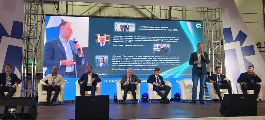 Первый вице-президент группы компаний «Аквариус» Дмитрий Титов выступил на пленарной сессии и рассказал о планах автоматизации производственного комплекса в Твери к 2025 году. В частности, компания планирует переход на роботизацию складского контура и сборочного производства. Это позволит решить вопрос с дефицитом кадров, а также будет стимулировать подготовку персонала высших уровней инженерной квалификации в вузах Тверской области.