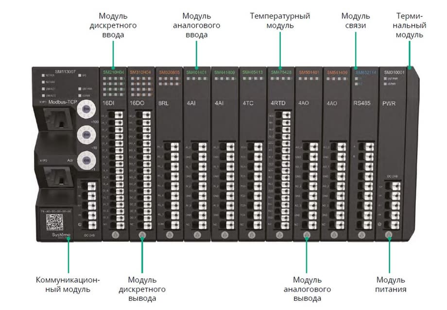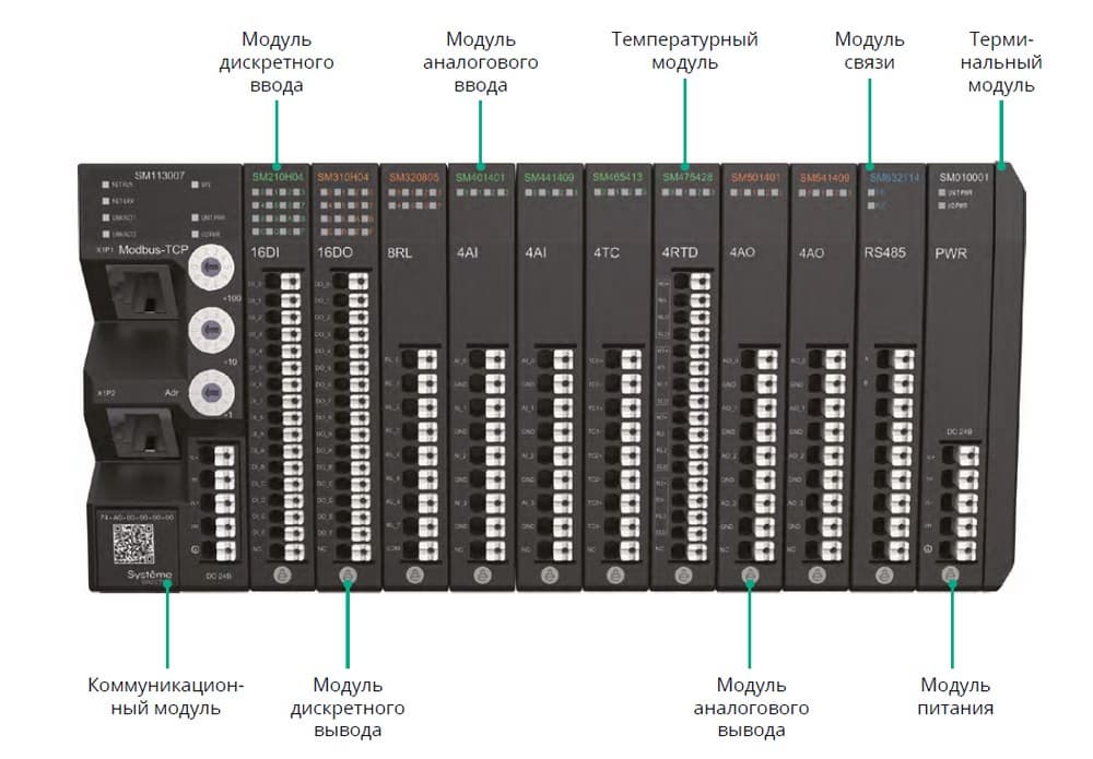 В состав предложения входят различные модули дискретного (на 8, 16, 32 канала) и аналогового (на 4 и 8 каналов) ввода/вывода. Модуль связи Modbus RTU Master позволяет управлять дополнительными периферийными устройствами.