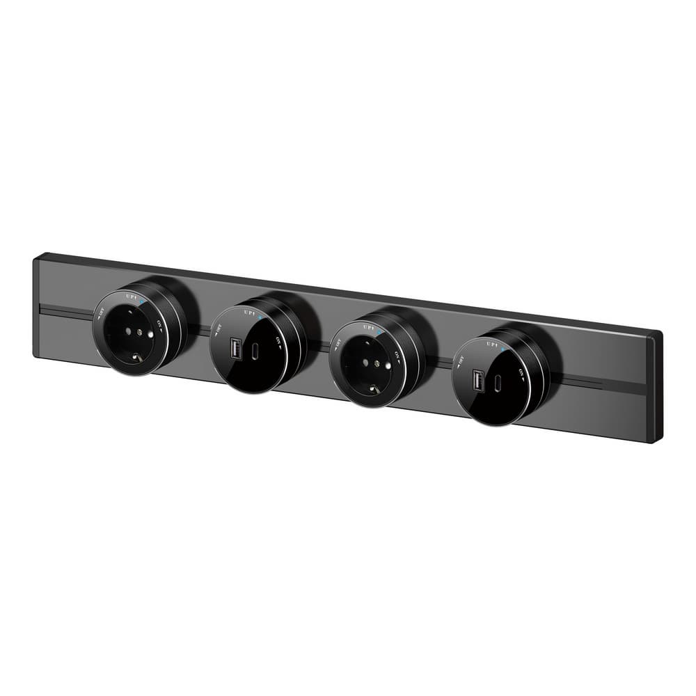 Вторая неотъемлемая часть системы – это розетки специальной формы и конструкции. Ассортимент розеток представлен в 3 типах: силовая розетка с заземлением европейского стандарта на 16 А, который применяется в России, универсальная розетка 13 А, способная принимать вилки большинства используемых в мире стандартов, и двойная розетка USB (тип А и тип С) на 18 Вт, поддерживающая быструю зарядку.