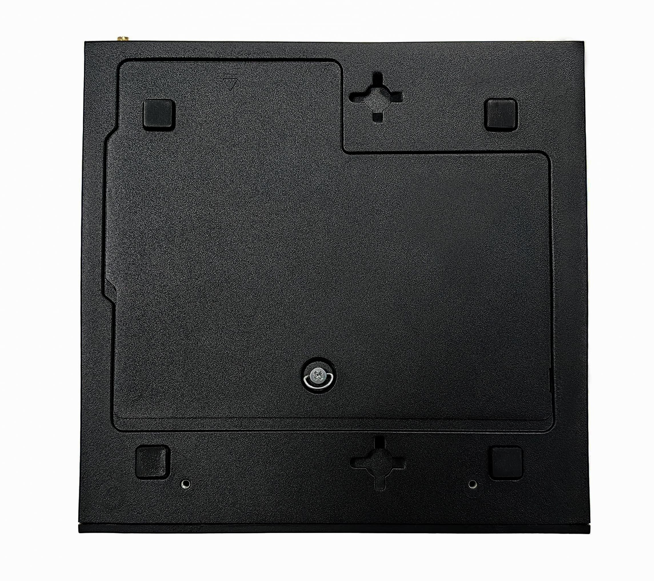 Ключевая особенность Rikor USSF 106.1 — сменный модуль портов на задней панели. Например, можно заменить второй LAN-порт на дополнительные USB или HDMI. Еще одна особенность — крышка на дне корпуса, которую можно снять без инструментов.