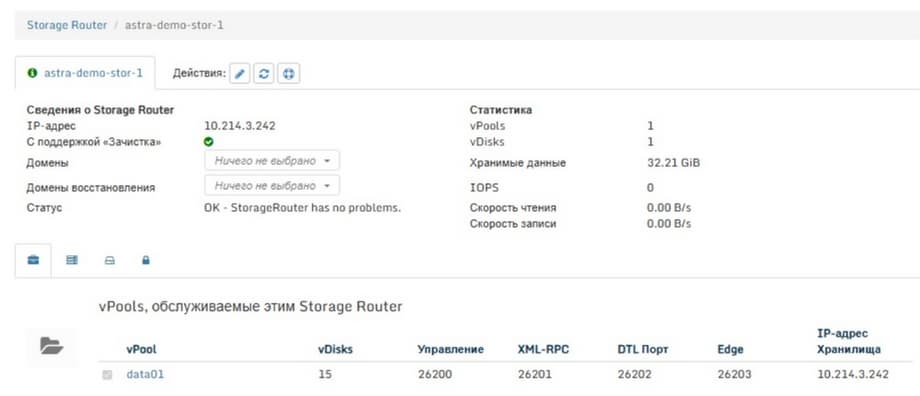 Улучшили информирование администратора о текущем статусе хранилища: добавлены пояснения к статусам виртуальных пулов, а также информация о маршрутизаторах хранилища для каждого виртуального диска и шаблона на странице виртуального пула. Пользователь теперь получает полную и наглядную информацию о состоянии системы.