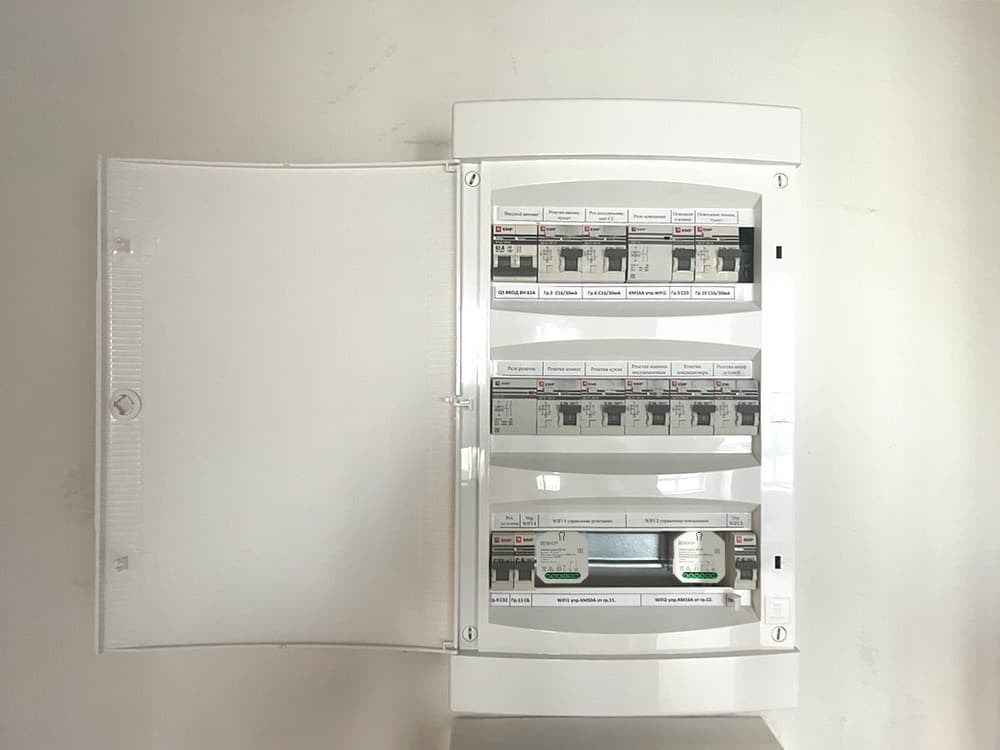 Умные реле размещены в квартирных щитах и управляют освещением и электропитанием. С их помощью новоселы могут легко отключать верхнее освещение и розетки через мобильное приложение EKF Connect Home или голосового ассистента Алиса. Решение от бренда EKF предоставляет новый уровень комфорта: жители могут управлять освещением и электропитанием из любой точки мира.