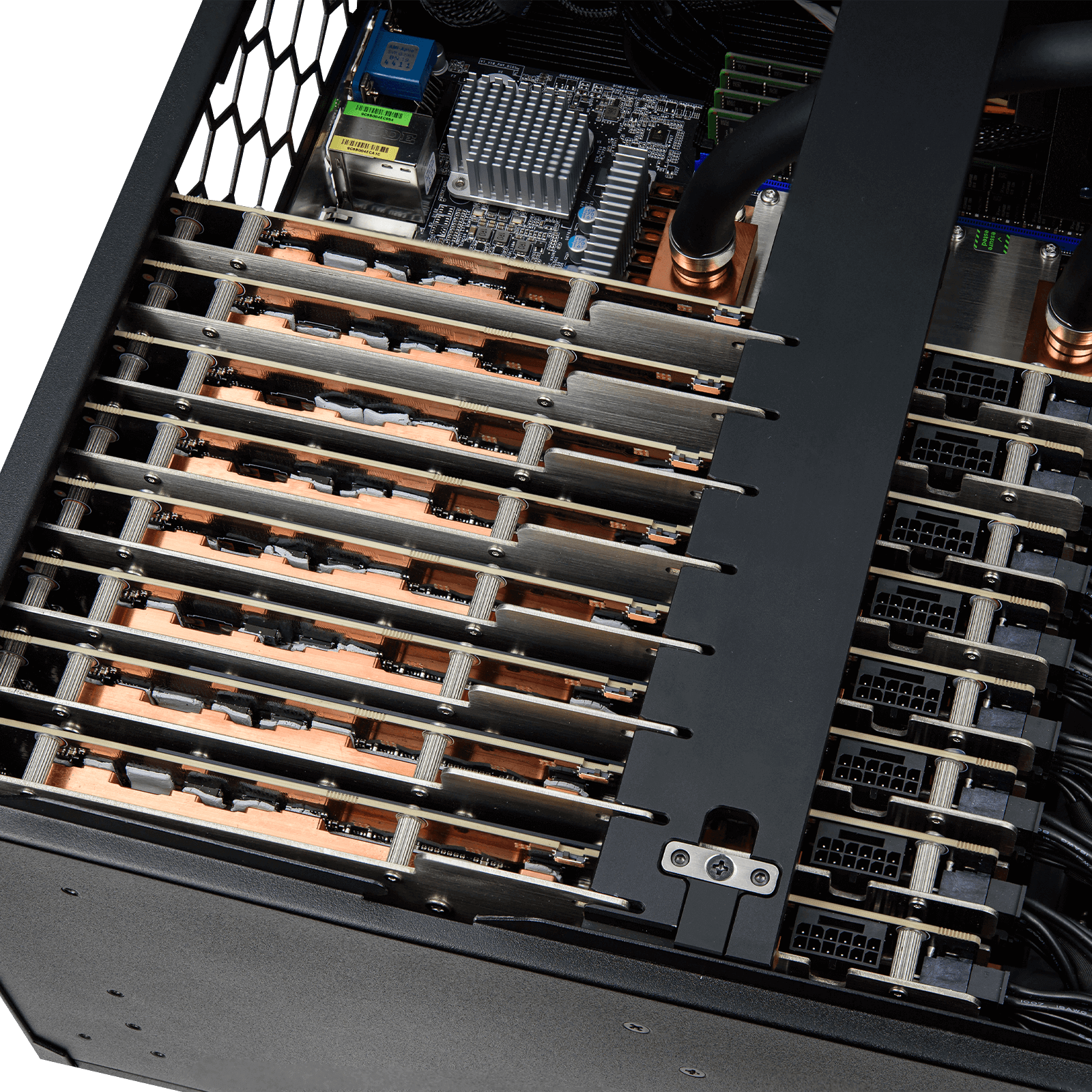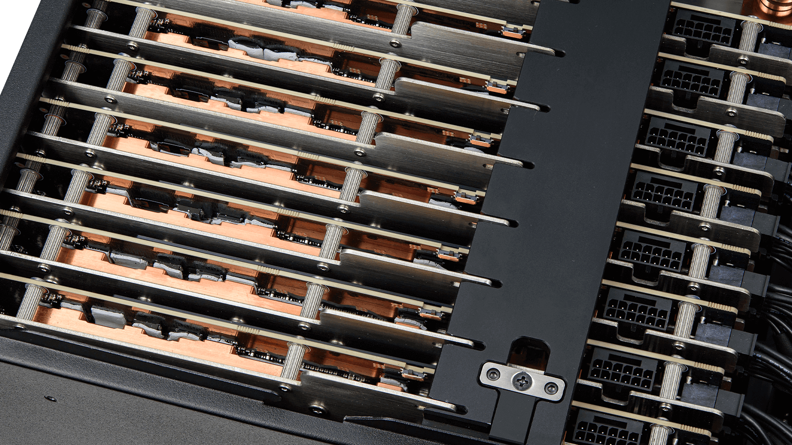 Сервер поддерживает до двух процессоров Intel Xeon или AMD Epyc последнего поколения и до восьми видеокарт Nvidia и AMD, до 2 ТБ оперативной памяти и высокоскоростные накопители SSD: