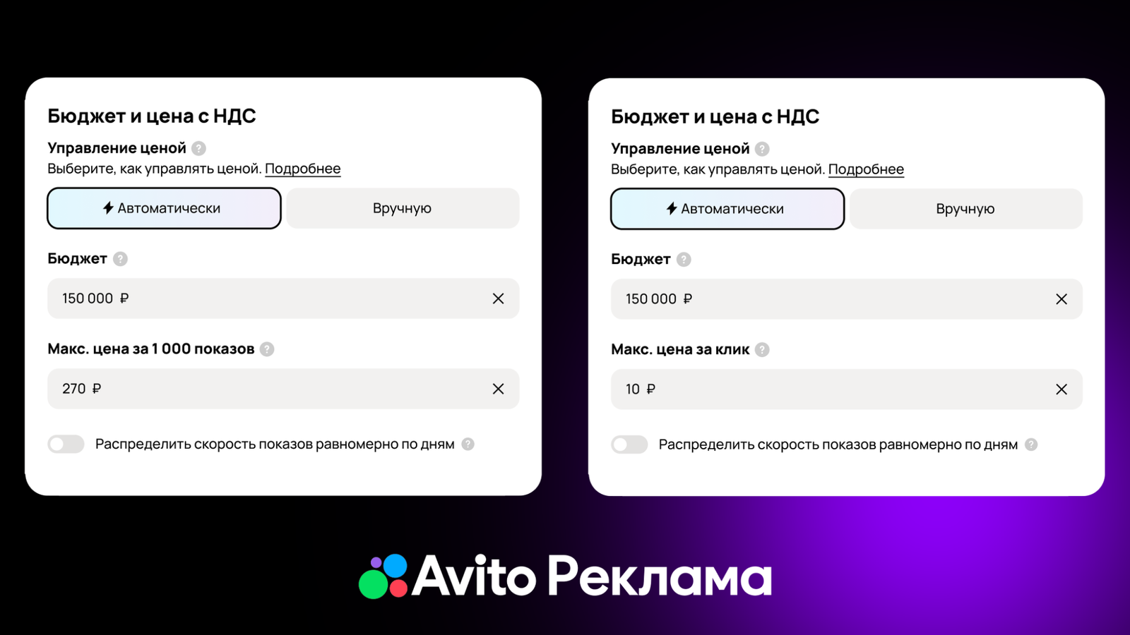 Команда «Авито Рекламы» внедрила функцию в кабинет автоматического управления бюджетом с использованием искусственного интеллекта. Теперь система самостоятельно регулирует стоимость клика (CPC) или тысячи показов (CPM), анализируя параметры кампании и условия рекламного аукциона.