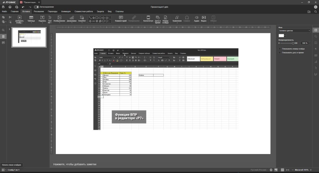 Команда «Р7 офиса» представила обновление десктопных редакторов с новыми функциями для работы с презентациями и таблицами. Теперь в презентациях можно использовать GIF-анимацию, что делает слайды более динамичными и наглядными. В редакторе таблиц появилась возможность изменять ширину столбцов диаграмм, что помогает точнее отображать данные и расставлять акценты при подготовке аналитических отчетов.