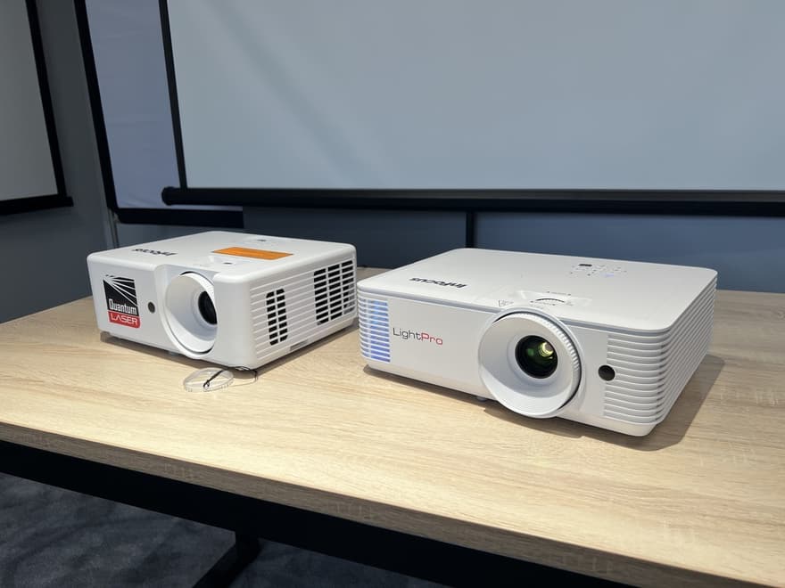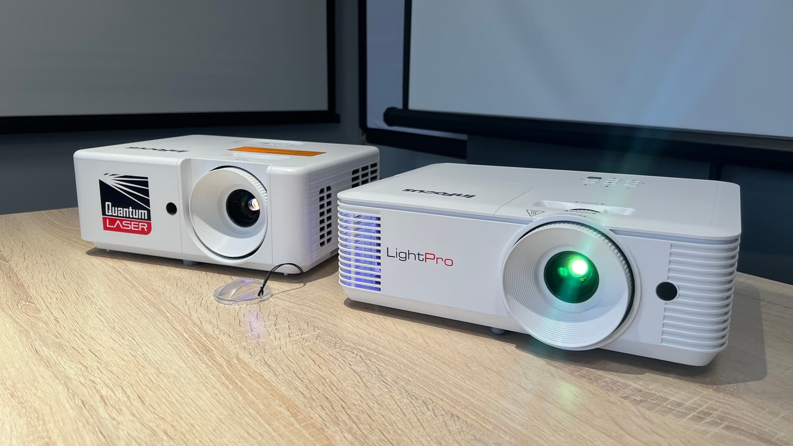 Чтобы убедиться в этом воочию, для корректного сравнения надо взять два проектора с похожими характеристиками и ценой: ламповый и лазерный. Найти такие непросто — компании обычно разводят ламповые и лазерные модели по разным секторам модельного ряда. Нам удалось подобрать подходящие модели у компании InFocus. Это InFocus IN0028SL Genesis IV с лампой и InFocus IN1008SL Nemesis I с лазерно-фосфорным источником света соответственно.