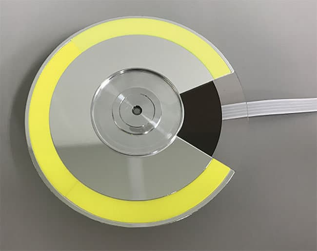 Фосфорное колесо одночиповых DLP-проекторов. Через прозрачный сектор когерентный свет лазера проходит напрямую на матрицу и в объектив